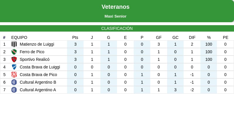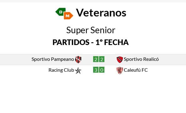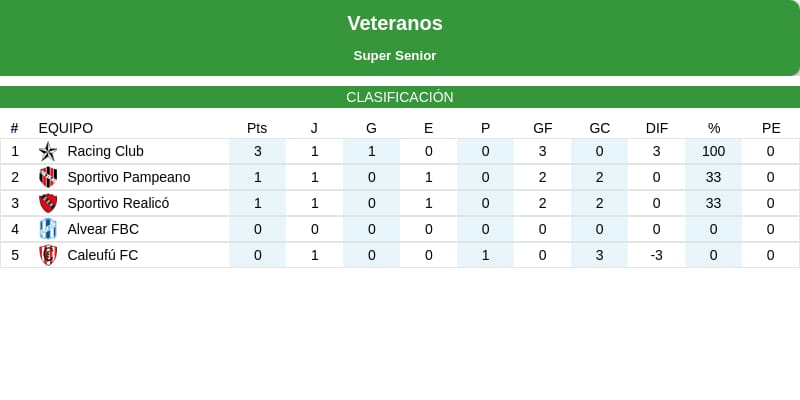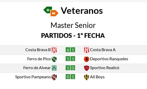 En General Pico, el albo debutó con una victoria ante Caleufú en la categoria Super Senior. Sintesis de la primera fecha del Torneo Apertura de Veteranos.