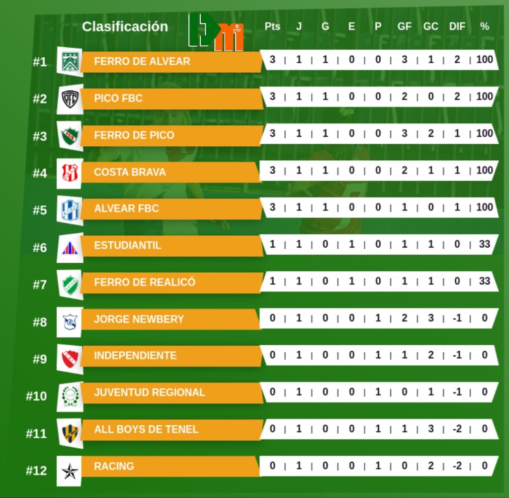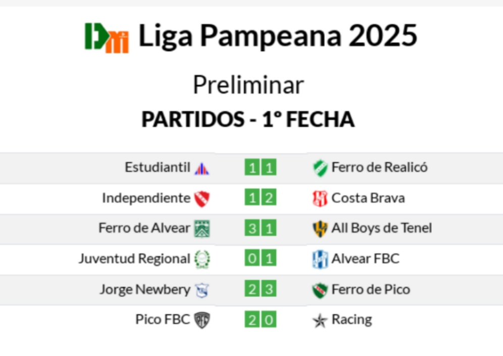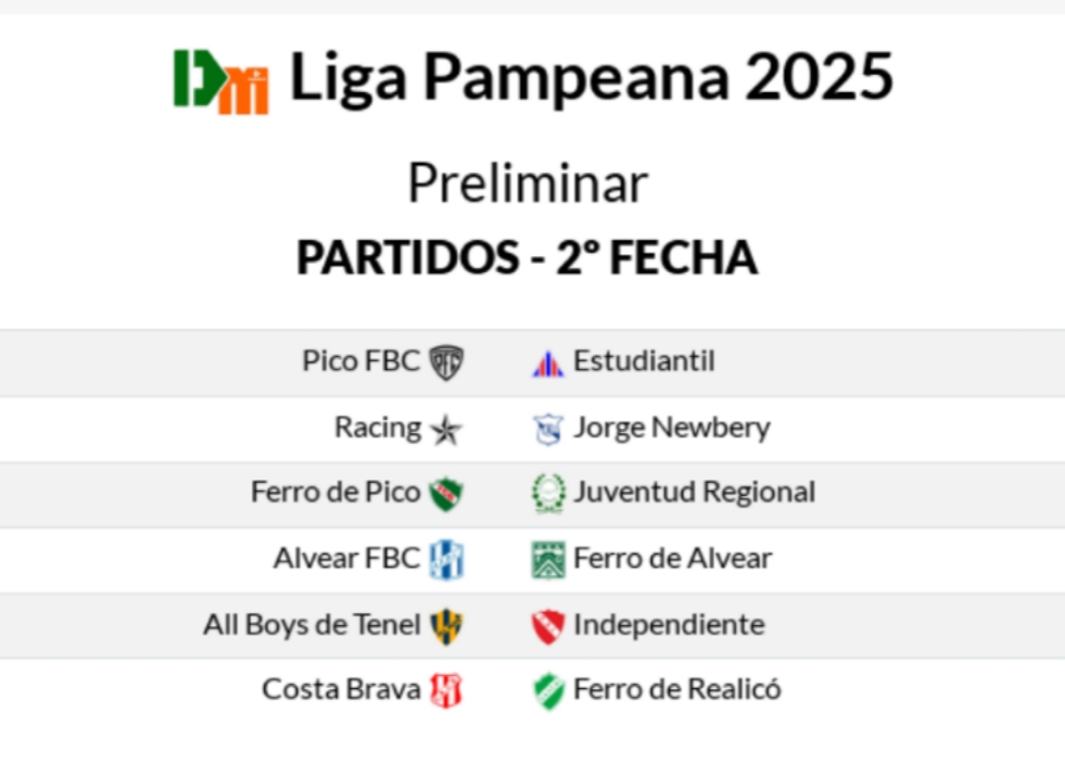 Primera fecha de la Liga Pampeana 2025 “Centenario Liga Pampeana – Copa 120 Aniversario Ciudad de General Pico” | Categoría Preliminar.