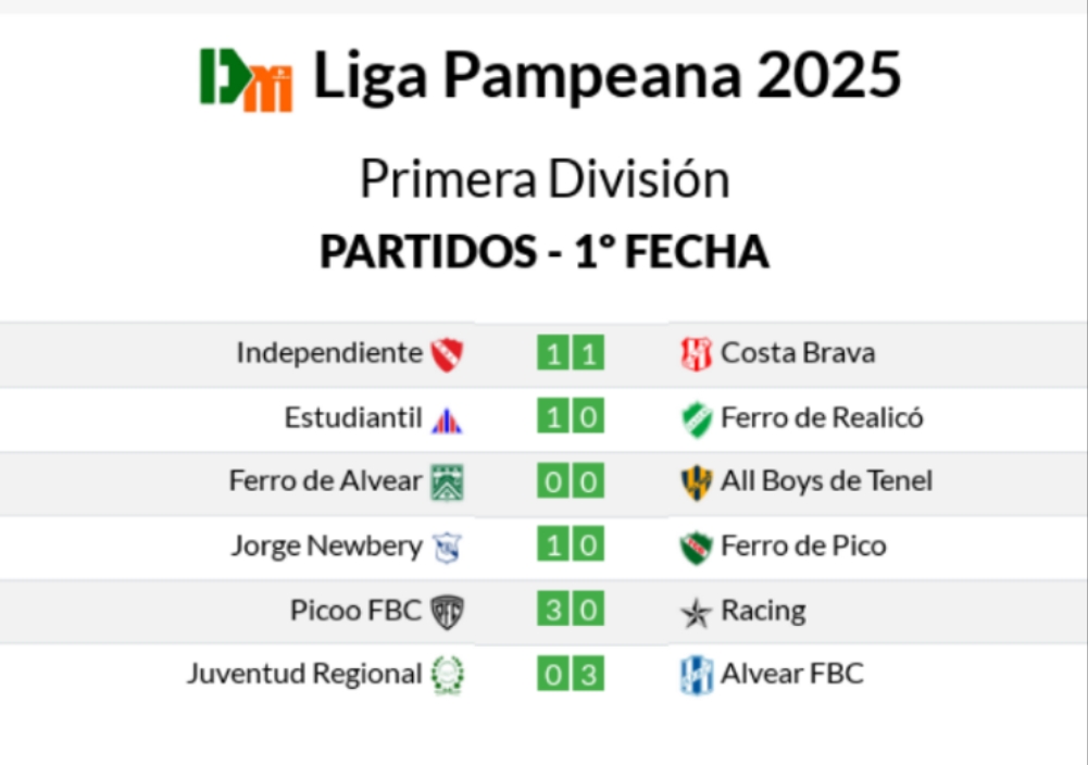 Se jugó la primera fecha de la Liga Pampeana 2025 “Centenario Liga Pampeana – Copa 120 Aniversario Ciudad de General Pico”.