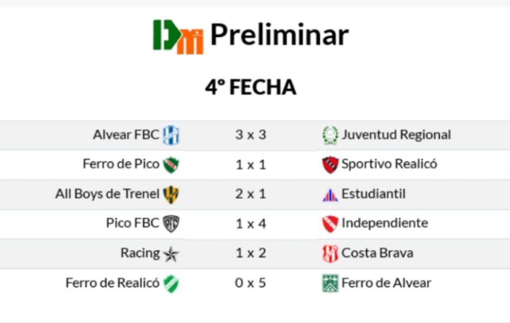 Se jugó la cuarta fecha del Torneo Apertura Preliminar de Liga Pampeana de Fútbol.